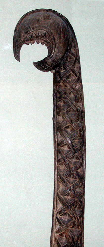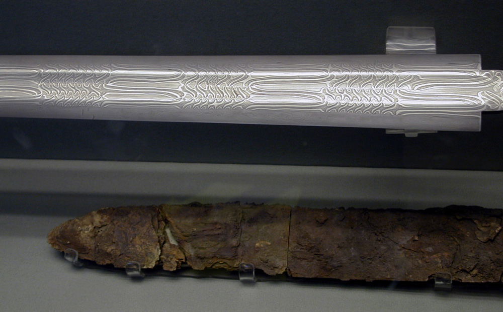 A beautifully patterned sword blade. A recreation modeled on what was found at the site |