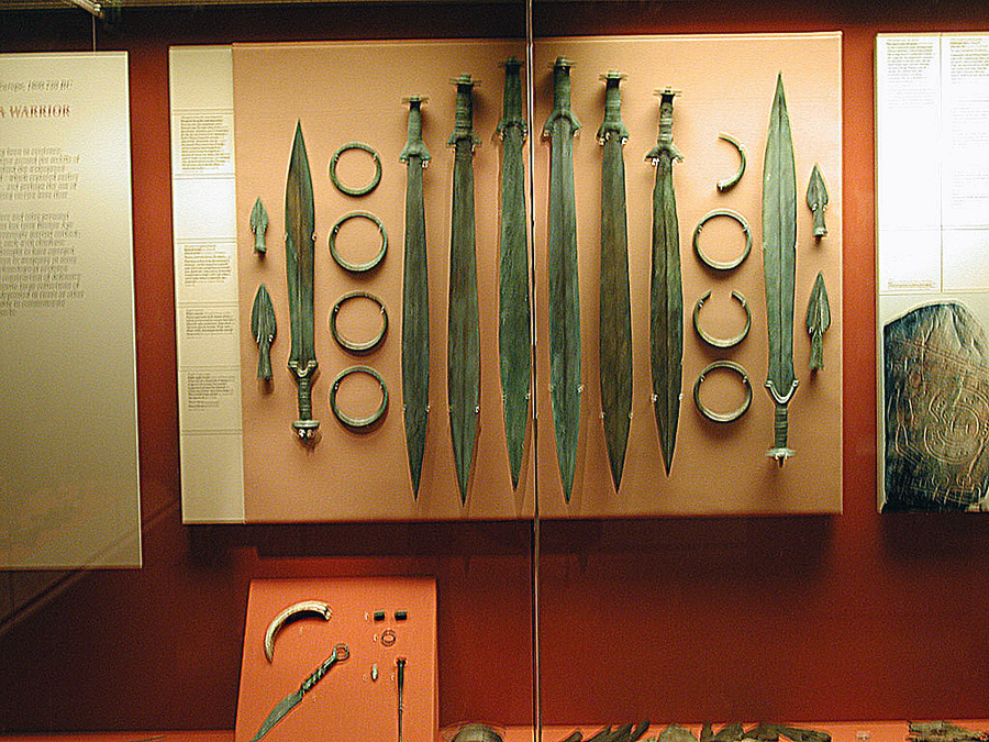 Bronze age weapons and decorative bands |