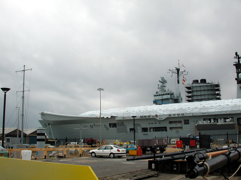 Porttsmouth, being a Royal Navy port at the time of my visit, there was also a modern airccraft carrier here - the year was 2001 and this one may be out of service by now. |