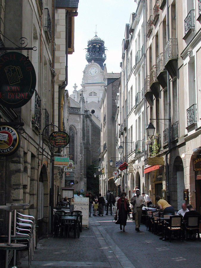 And past the Duke's castle, a charming old city center to get some food and to wander around in, Not looking for it then, I did not know about the great and flawed cathedeal of Nantes. |