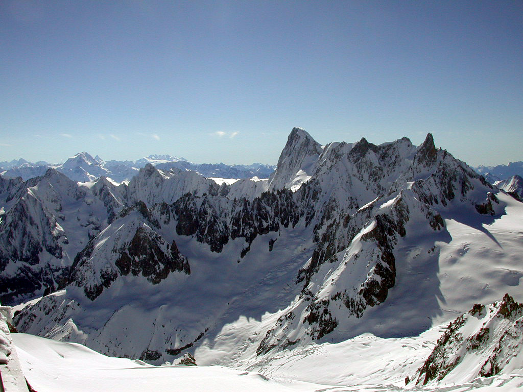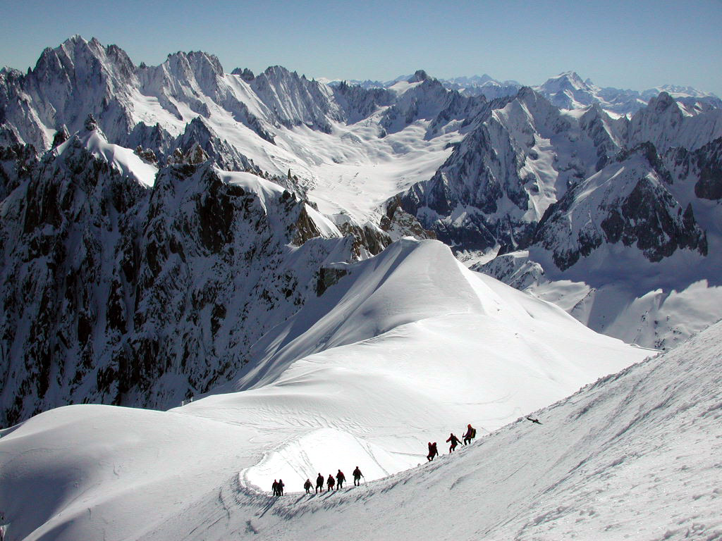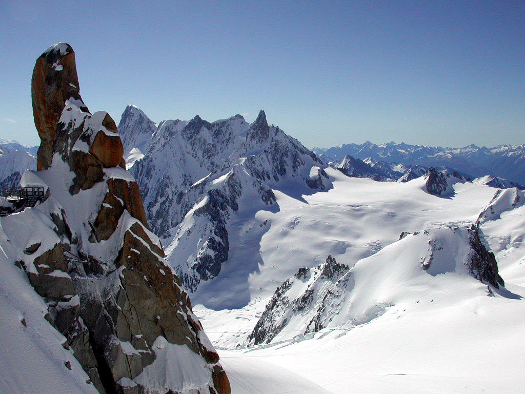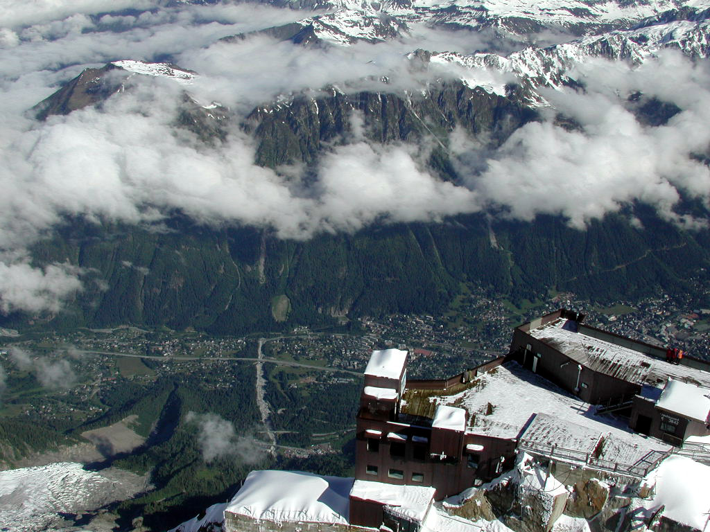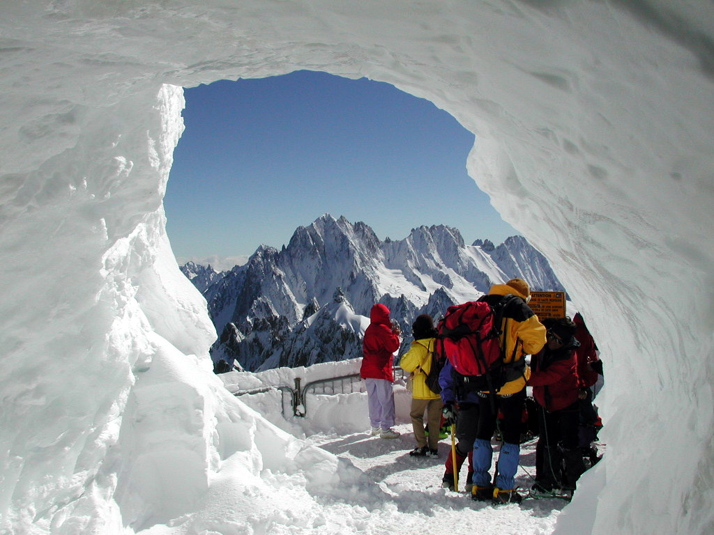 At the highest level, I walked back down to get to this ice cave, where people were getting ready to hike the side of Mt Blanc. Afterward, some of them would ski down. Guides are imperative because of crevices and other threats. |