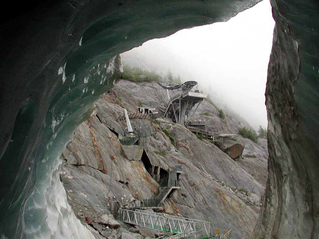 There is a special train that takes you to the Mer de Glace, after which you climb down all of these steps to get to the bottom |