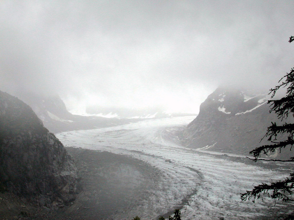 From way up high, the first sight of the glaicer is something like this, weather permitting |