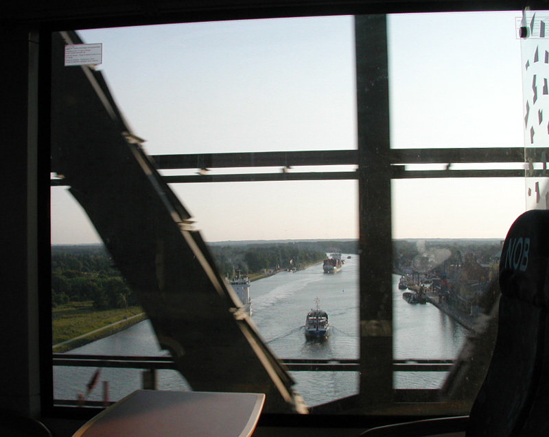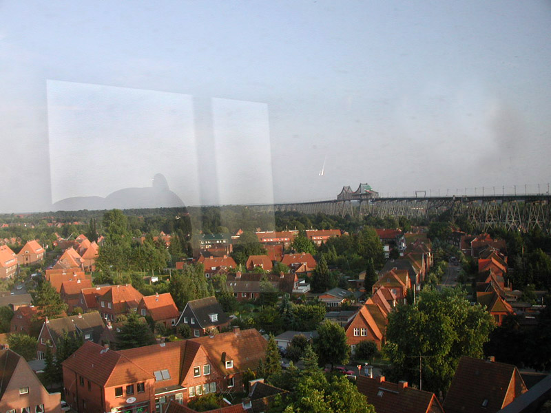 | I stayed in Lübeck, a city I had long wanted to visit, and took the train from there to a town near Haithabu. The train went across a very long bridge, that you may be able to see in spite of window reflections. Next I got a ride on a Vespa from an old traveler, who took that thing and a sidecar all around Europe. From there I walked in.. |