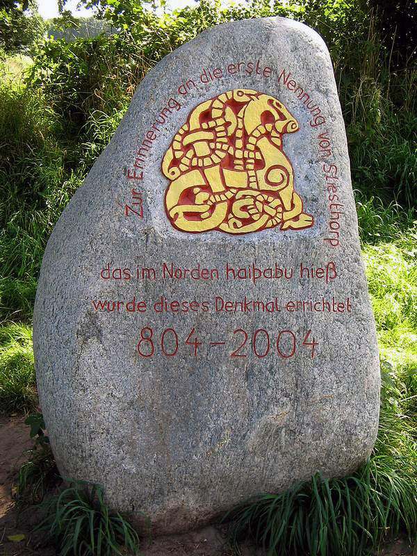 Here, in Viking style, a reminder of the first mention of haithabu in 804 AD |