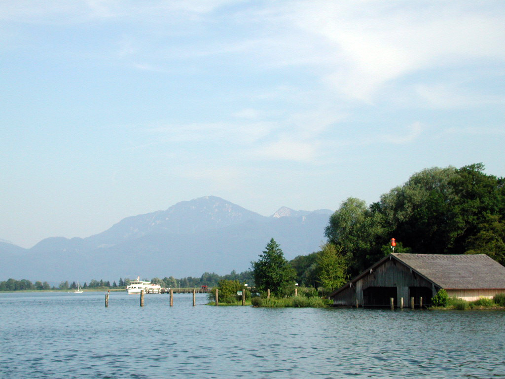 A wide approach with view of the Herrenchiemsee, the surrounding lake |