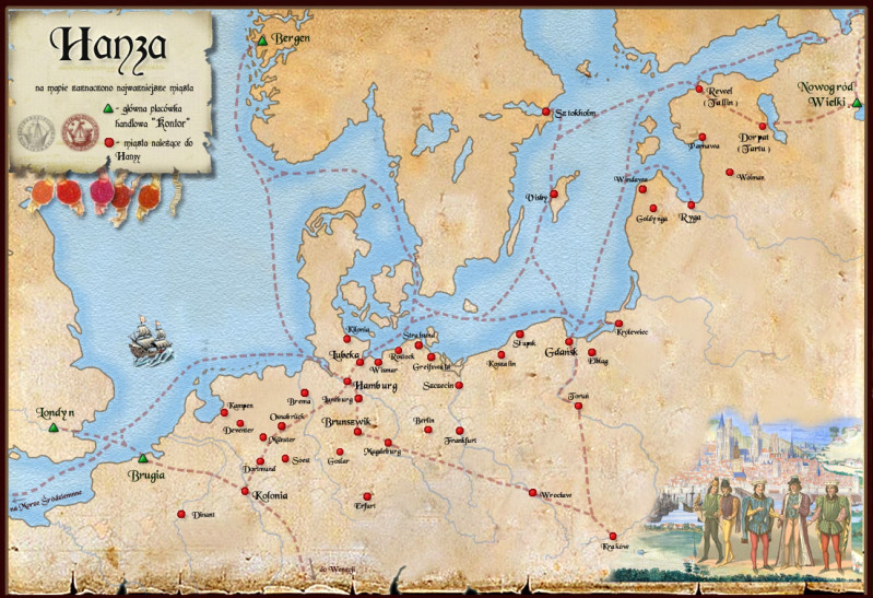The trading routes of the Hanse merchant fleet. |