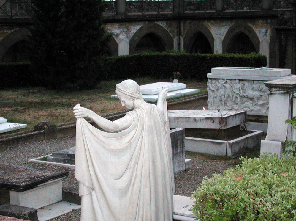 One of the fine graveyard statues standing over the graves of people such as Giovanni Meyer (founder of the Florentine children's hospital), Mario Cecci Gori (film producer and pres. of football club Florentina), and Carlo Collodi (spiritual father of Pinnochio) |