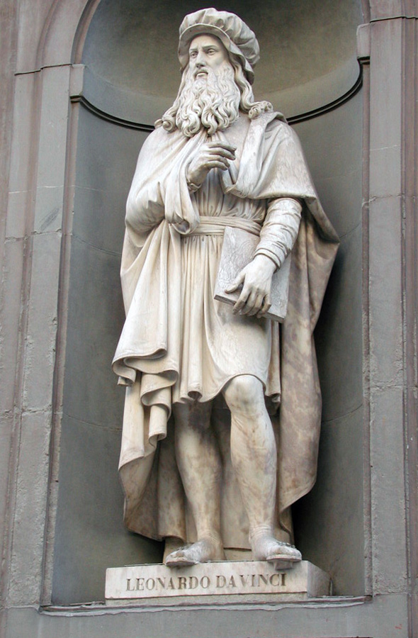 One of the many sculptures on the facade of the building across the Uffizi |