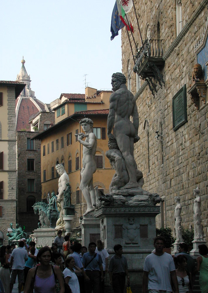 Piazza della Signoria. When artists would present their latest marble statues here, the crowd was the judge and there were times when they would burn the statues right here. |