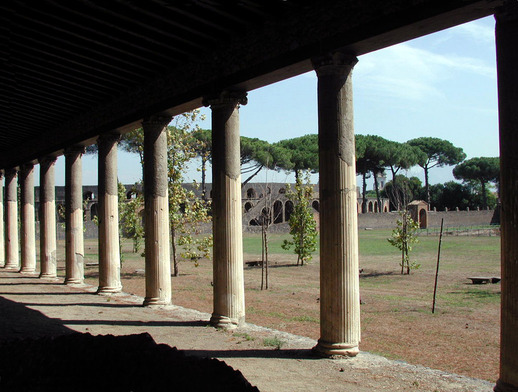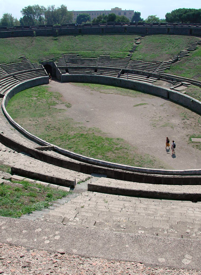 Looking down on the Palaestra, a large exercise area next to the arena, the amphitheater |