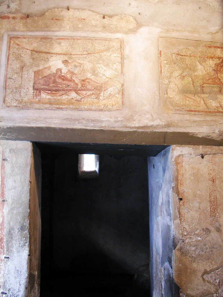 Being a harbor town, Pompei had to entertain (and fleece) many foreign visitors and sailors, many of who did not speak Latin. The easy way for them to find where they wanted to go were obvious signs. Signs that led to places where advertisement depicted what was on tap, and prices for various entertainments offered, in a slave society, anything was game.. |