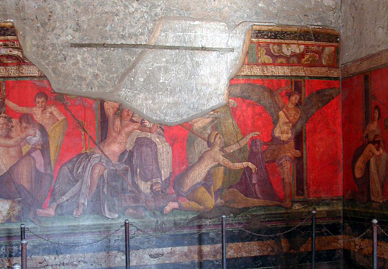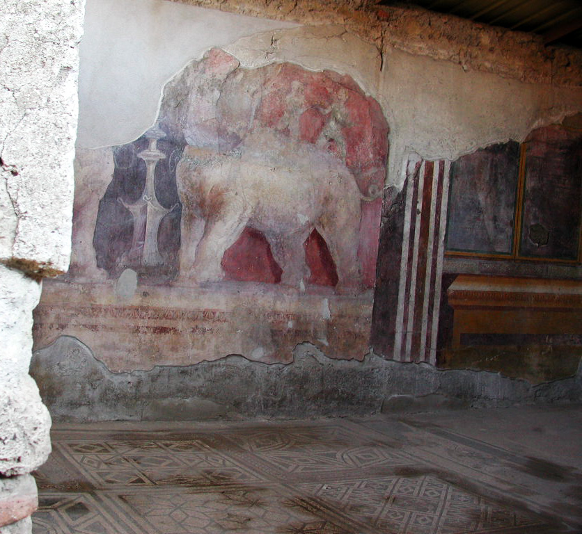 A boar hunting scene in the vestibule of one villa in Pompeii |
