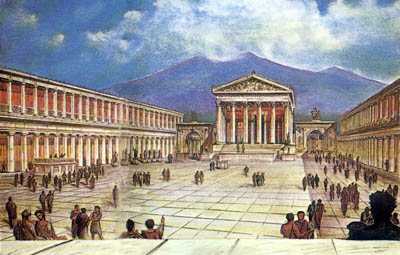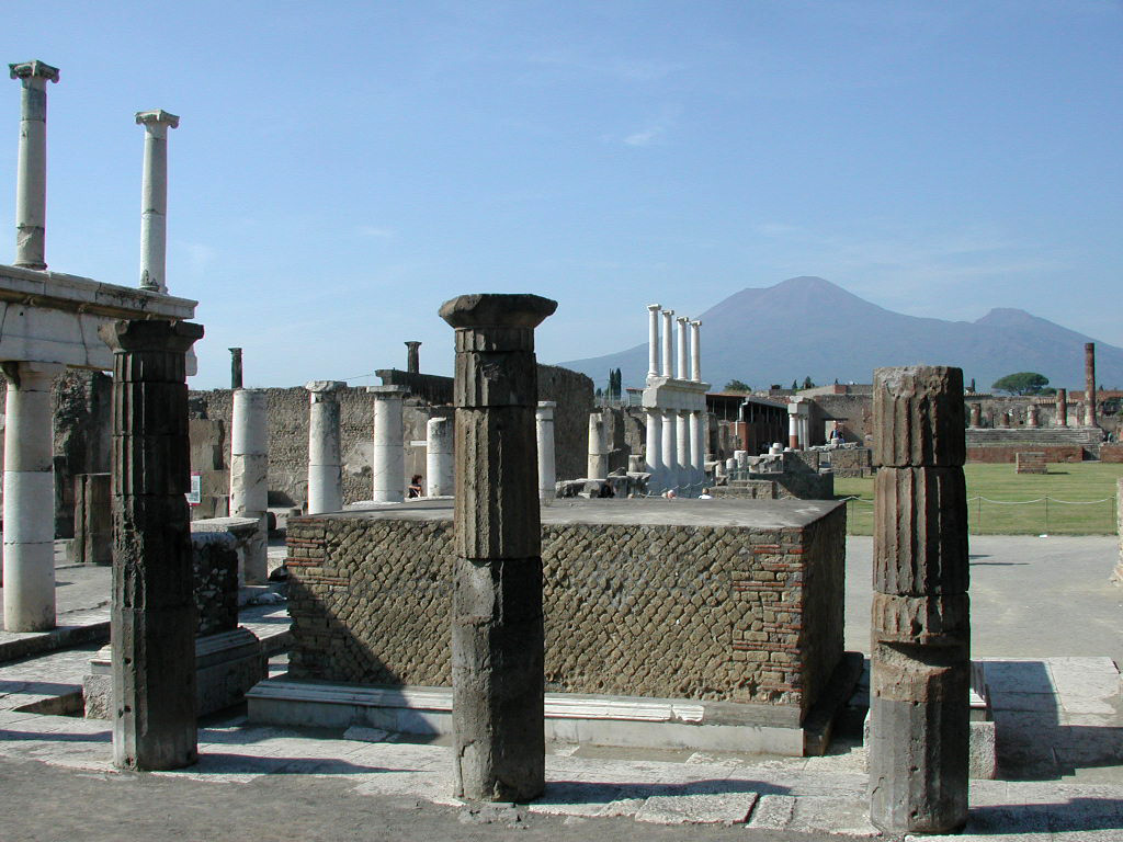 Looking down the Forum, north, toward Vesuvius. On the left the Temple of Apollo, at the far end, the Temple of Jupiter |