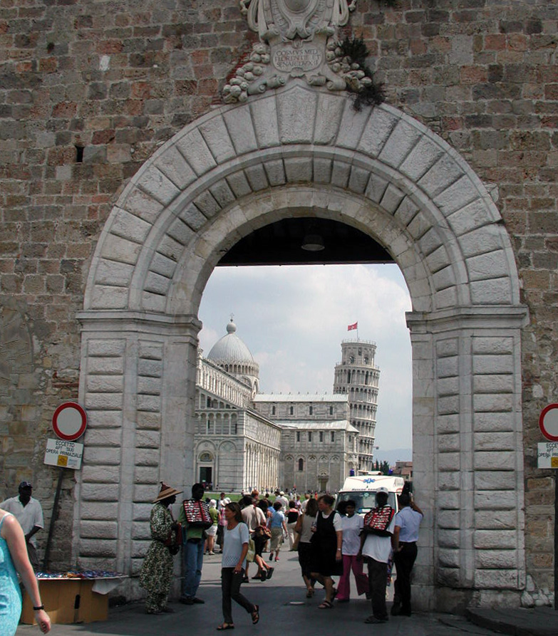 Pisa started in Etruscan times, 180 BC. Its location in the River Arno valley, close to the Tyrrhenian Sea, and in the north of Italy made it subject to frequent invasions by invaders, including the Vikings, Byzantines, and Saracens (Muslims) probably ranging up from Sicily. This same location also made it a wealthy center of trade, ranging as far as Spain and northern Africa. In 1075 AD Pisa evolved a set of legal merchant rules called the Conseutudini di mare, that enabled the merchants from Pisa to prosper even more (hence the invasions). Wealthy Pisa also was able to send troops in support of the Vatican's first crusade in 1099 AD, Pisa, now a city state of wealth and power even develped colonies in northern Africa, among them, Antioch, Tripoli, and Tunis and made it's own treaties, such as the one with Byzantium to open trade routes to the Holy Land. There was an uneasy relationship with Florence, another city state growing in power and influence, resulting in occasional military confrontation in the 13th Cent. These conflicts grew into major warfare until in 1509 they were forced to surrender and submit control of their city to the government of the Florentine Council of Ten, led by Machiavelli. They remained the harbor of Florence until the house of Medici weakened and the French King Charles VIII was given control of Pisa, to the great relief of the Pisans. Meanwhile, Pisa also became a center of learning and it is known that Galileo moved there to conduct his gravity experiments, Galileo Galilei also taught mathematics there and kept Pisa in the public eye with his clash with the Catholic establishment by his published support of the Copernican theory of a Solar-centric system, which ran counter to the Papal supported idea of the Earth-centric view of the universe. |