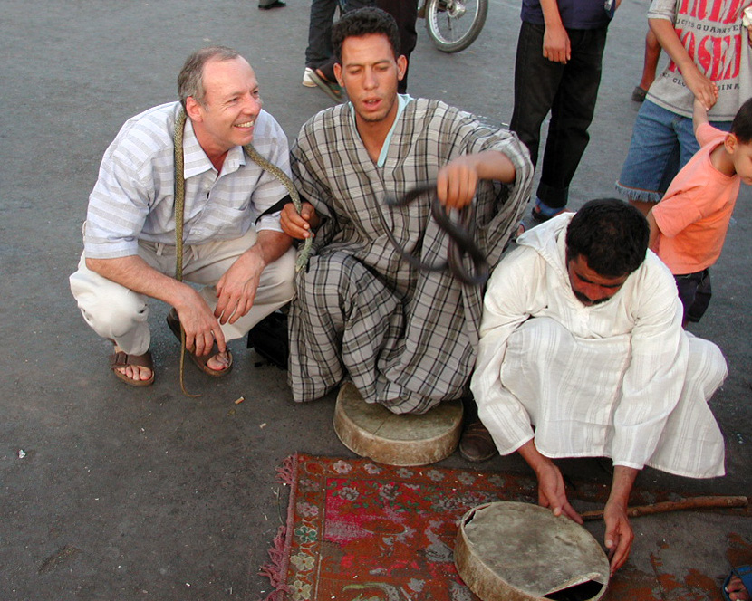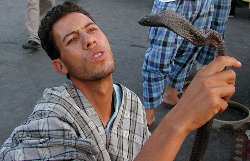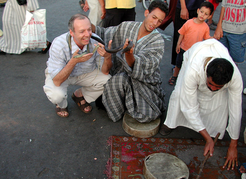 Of course, he hangs the harmless little snake around my neck - no problem, I do like snakes (and spiders, too) |