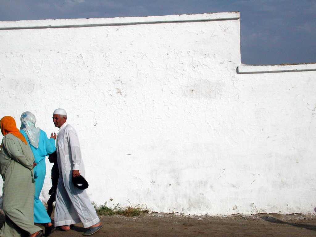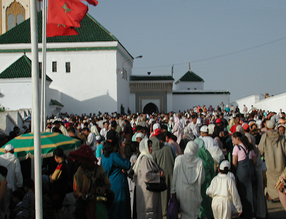Throngs of worshippers going into the mosque. They were celebrating the Prophet's birthday and the town was filled with celebrants |