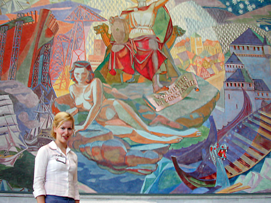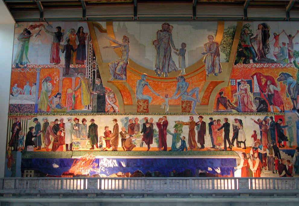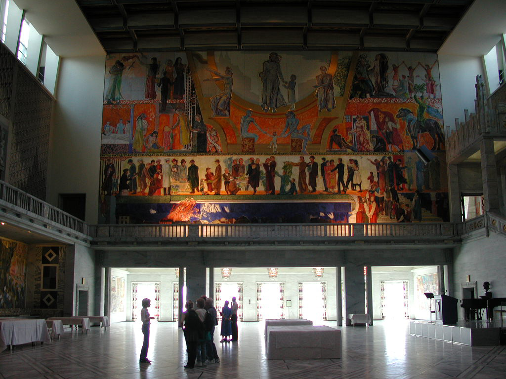 | As I was traveling around Europe I had already heard of the amazing Oslo City Hall, and it sure lived up to its reputation. Here is the entrance. It's what you do on long winter nights, drink and paint. |