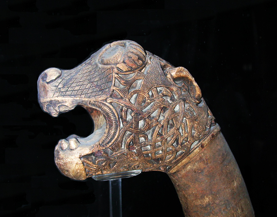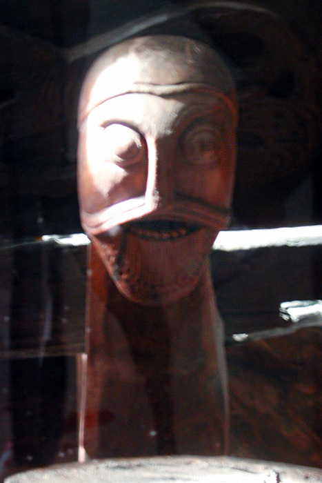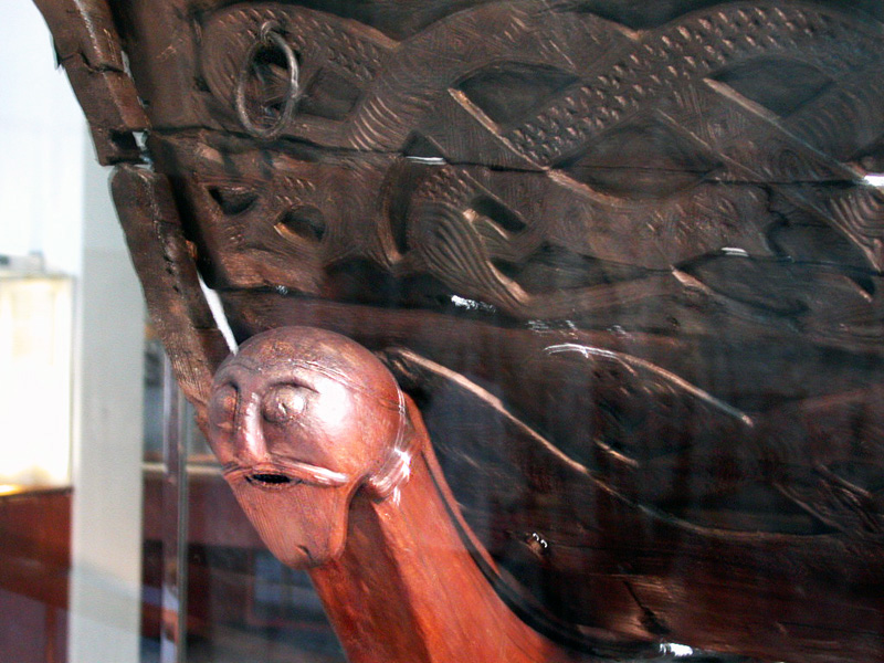 Under glass there was this wonderfully carved Viking cart. The ends of the cradles for the body all terminated in carved wooden heads |