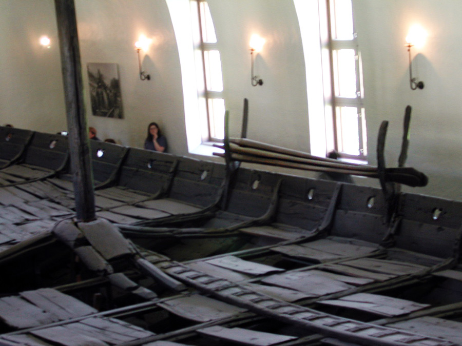 Looking into the Oseberg ship. The so-called mast fish locks the removable mast in place. |