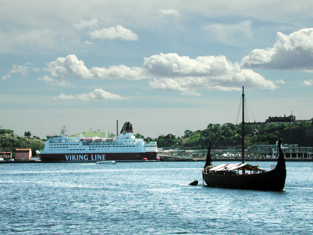 A Viking ship shaped harbor cruise boat. In the background one of the ferry ships of the Viking Line. I'll be on that, next time, possibly going all the way to Helsinki, Finnland, and Tallinn, Estonia. |