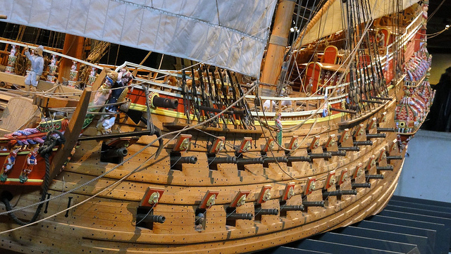 Stunning views of the ship from a balcony high above. Naturally, the rigging is not original |