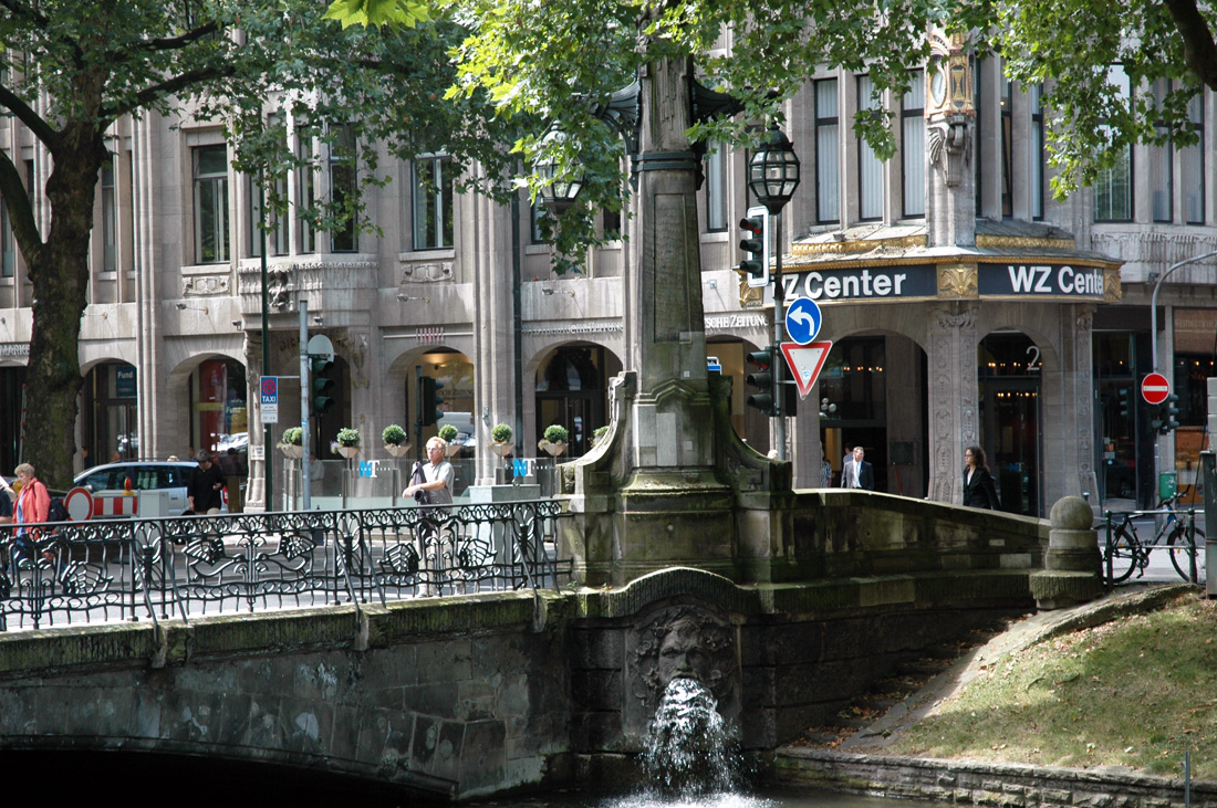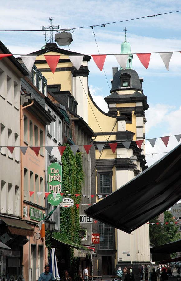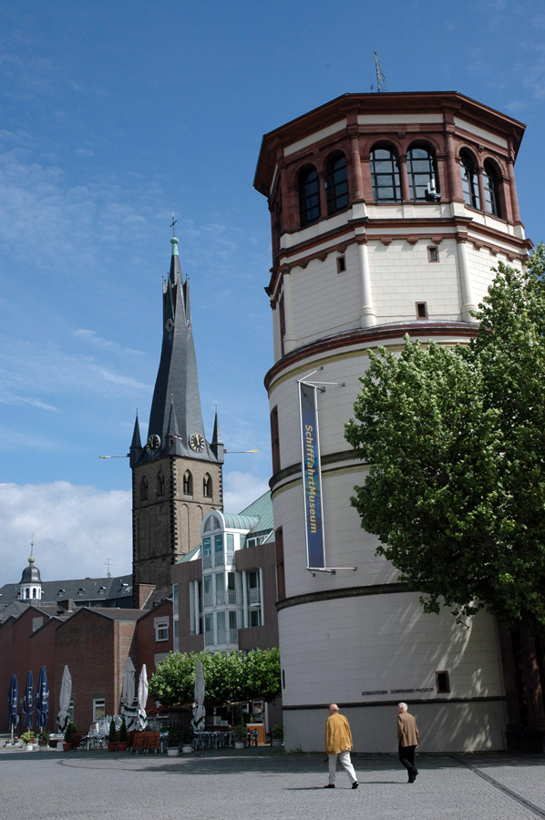 Düsseldorf was one of the villages of Germanic tribes that stayed out of the way of the Romans, in this case, just miles away, in Cologne. This city grew from one of those villages, in this case, the Dorf (village) at the Düssel, a small contributary to the Rhine River. Düsseldorf was first mentioned in 1153, the Romans long gone by then, and was granted the status of city in 1288. This culminated from a war and deciseive battle between the Count of Berg, who ruled from Düsseldorf, and the Archbishop of Cologne. The victory resulted in the elevation of Düsseldorf to city status. Since then, and coming from Düsseldorf, I attest to that, there is an ongoing rivalry between the two cities. |