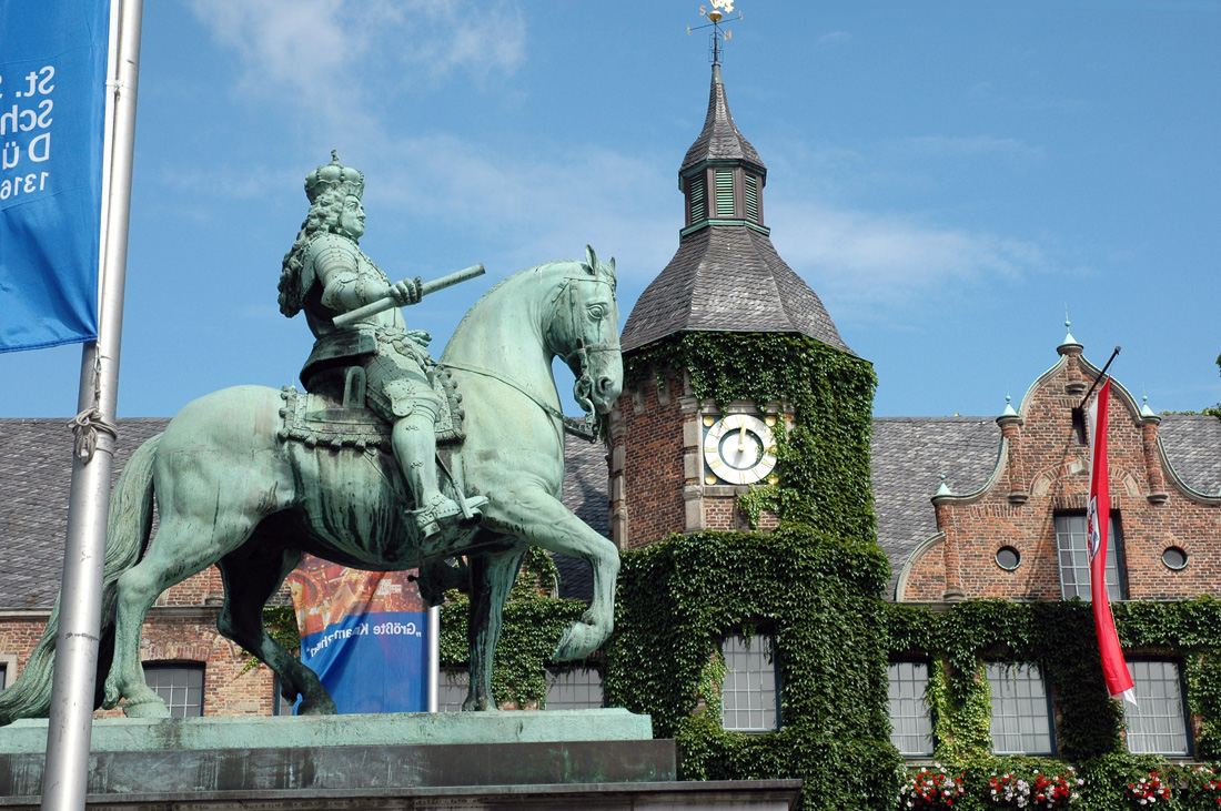 ...in front of City Hall of Count Johannes WIlhelm II (1690-1716) who really grew the wealth and power of Düsseldorf with his wife Luisa de' Medici. The Count also married well, one might say. |
