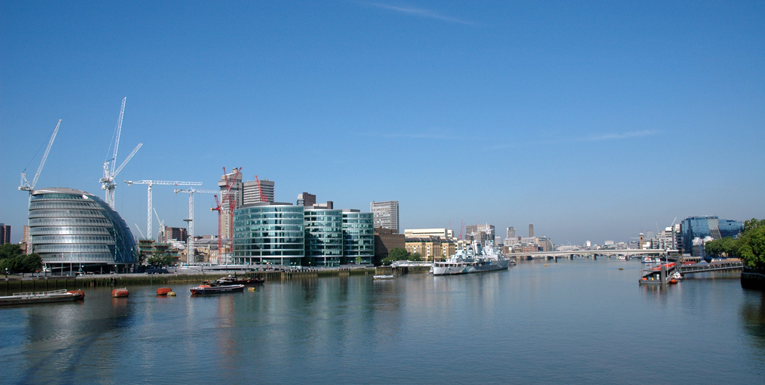 I stopped on the Tower Bridge for some pictures of the new construction , incl. the new City Hall curved glass building |