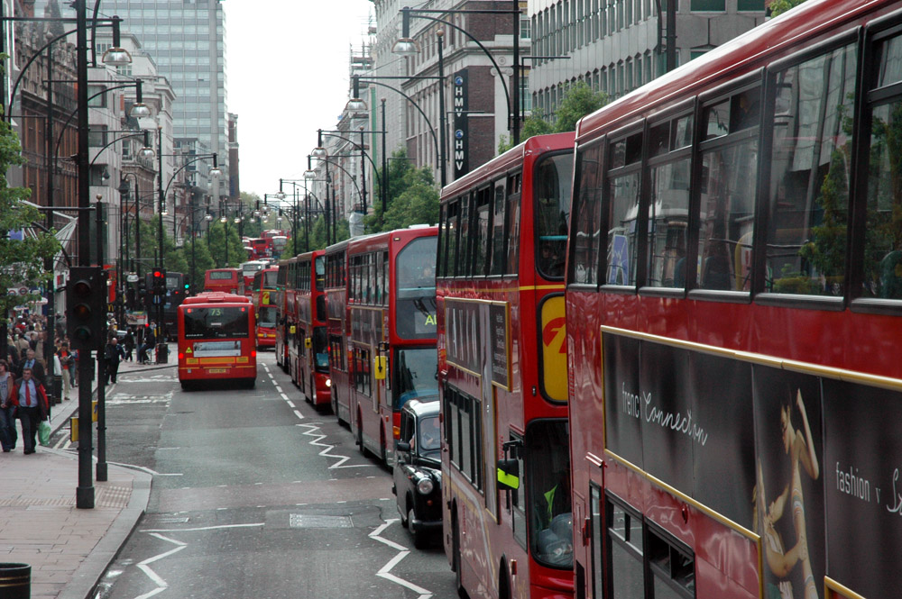 And this is what rush-hour looks like on Oxford Street. The rest, of course is traveling underground. |