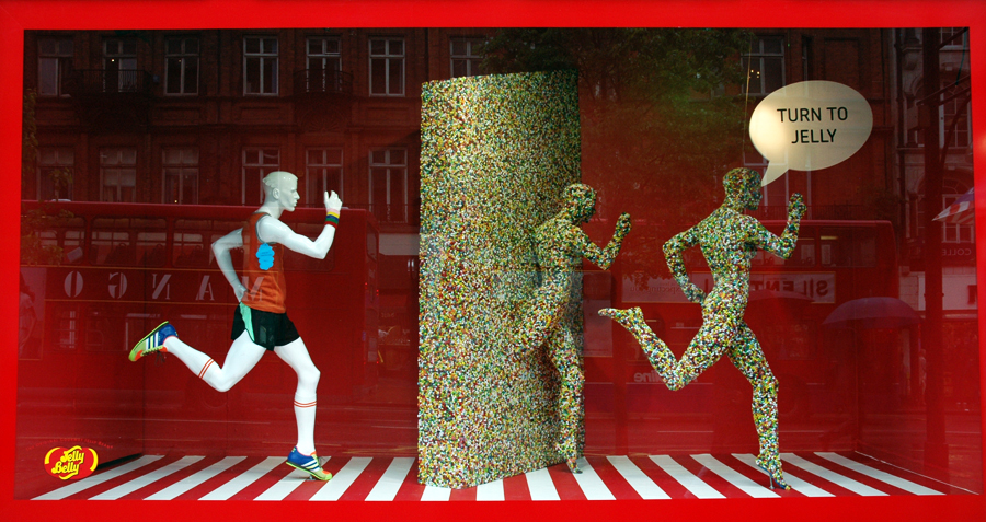 One of the creative displays at Selfridge, (like: turn to jelly, old bean) |