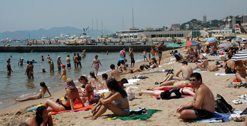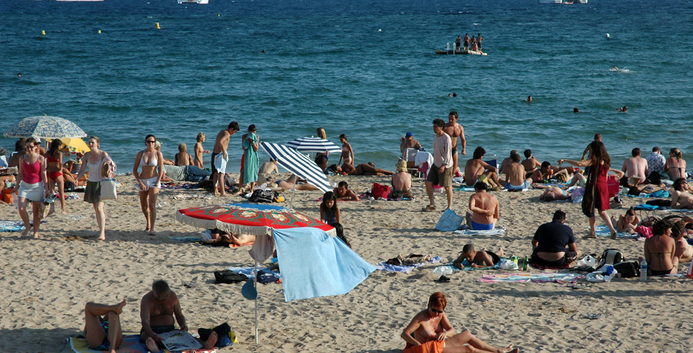 Time to hit the streets of Cannes to find something to eat. I usually swim in the morning, when the beaches are empty and it's cool out |