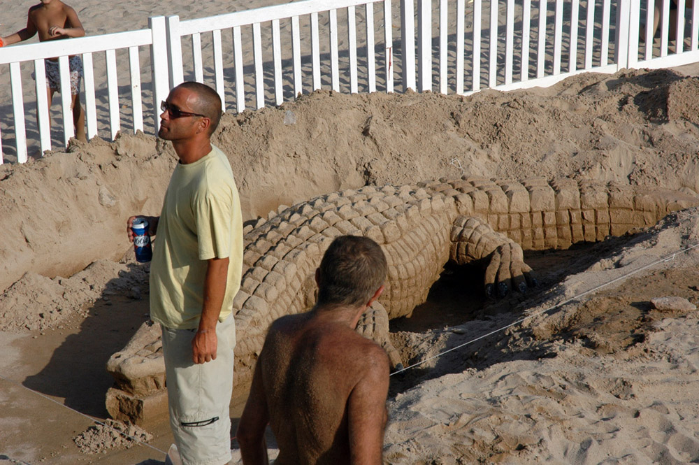 Sandsculpting for beer money - he was hoping or chicks, but for some odd reason they stayed away |