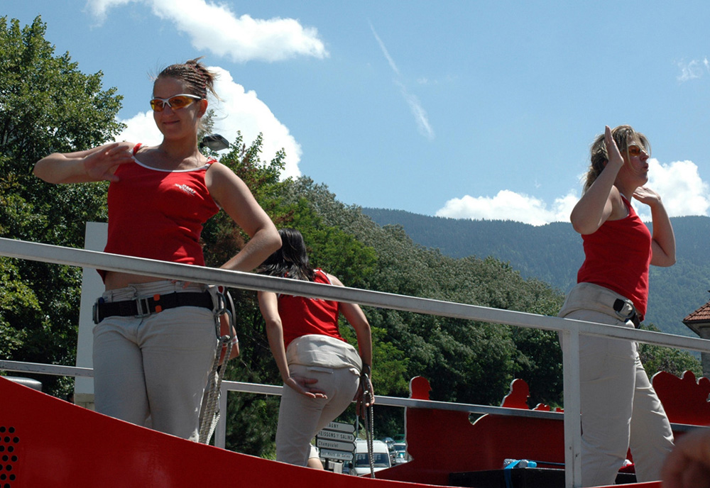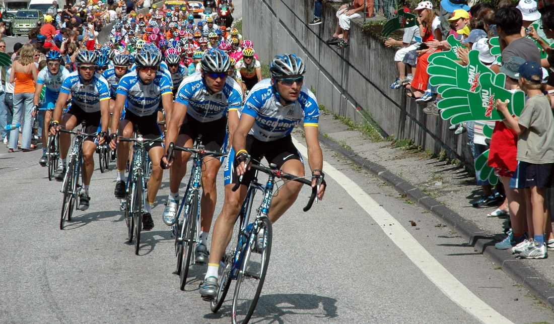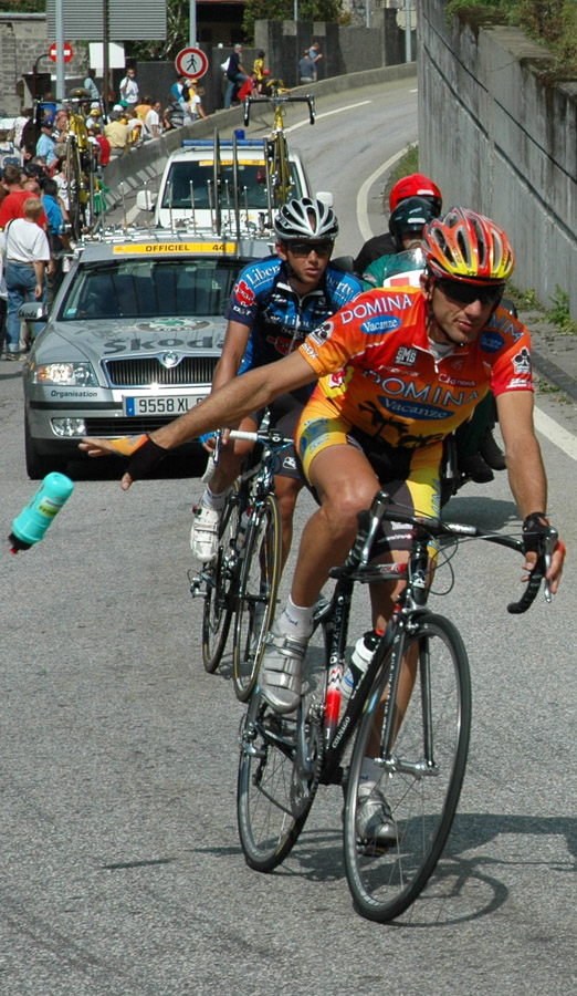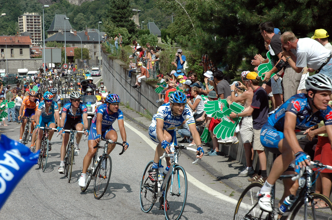 So, let me tell you what happened in Moutiers. There was this American family, the girl above was part of them. Mom sat in a lawn chair in front of me. I told her that I would be standing behind her, waiting to take pictures of the race leaders. She said, no porblem, not to worry, and said that she would stay seated anyway. Then Lance came up the hill, I put my camera to my eye and all I could see in the viewfinder was her hair. She had jumped up and completely obliterated any chance of my getting any pictures of the race leaders. They were gone in flash, while she had full view and took pictures. She apologized, of course, but that did not help to get back a once in a lifelime opportunity, for which I had traveled half around the world. There is no second chance once an action shot is missed.