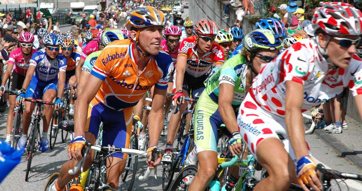 The guy in the polka dotted jersey is the King of the Hill, at least at this moment in time
