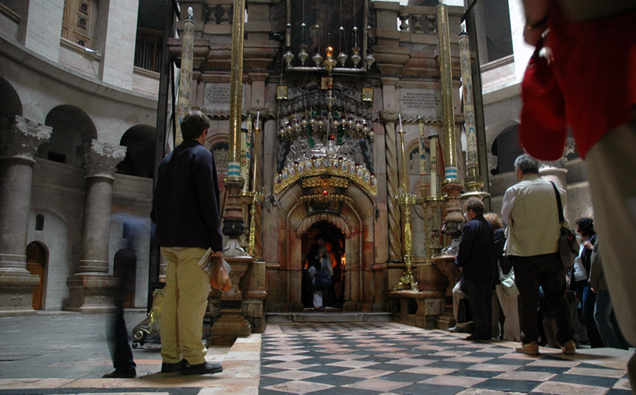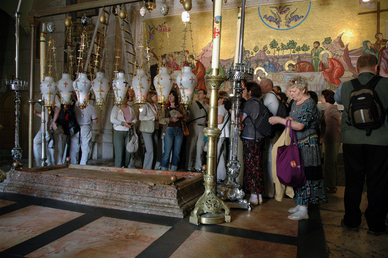 The Edicule housing the Holy Sepulchre - how to blend in as a photographer is to kneel and take all the pictures you want. You kneel even on just one knee and you become invisible. Everyone thinks you're praying and disregards you. |
