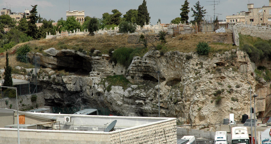 The suspected site of Calvary. It apparently conforms to the Bible descriptions in many ways |