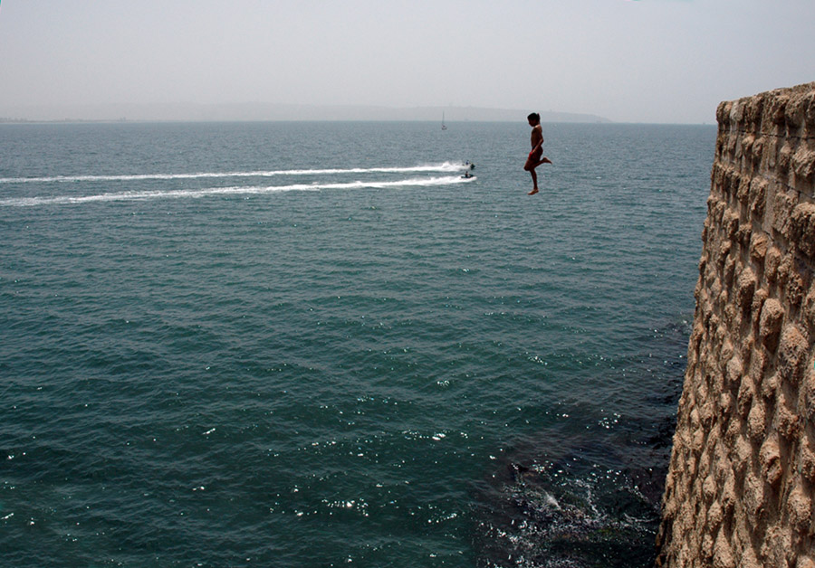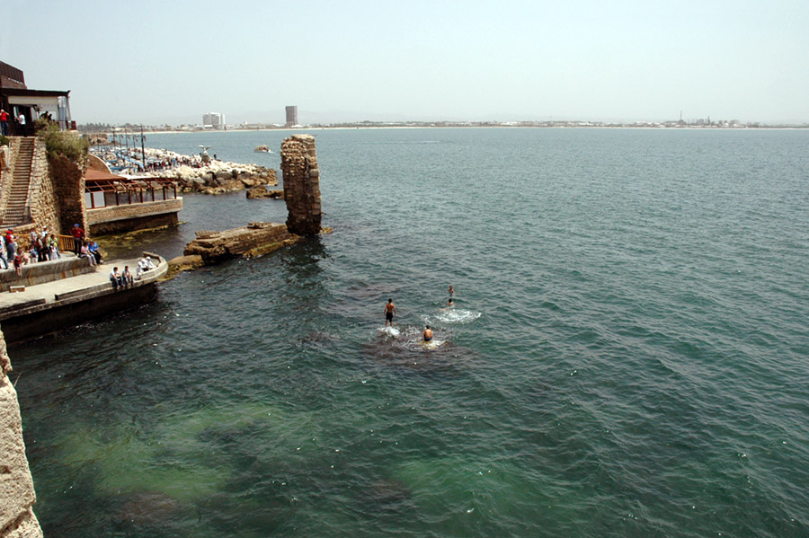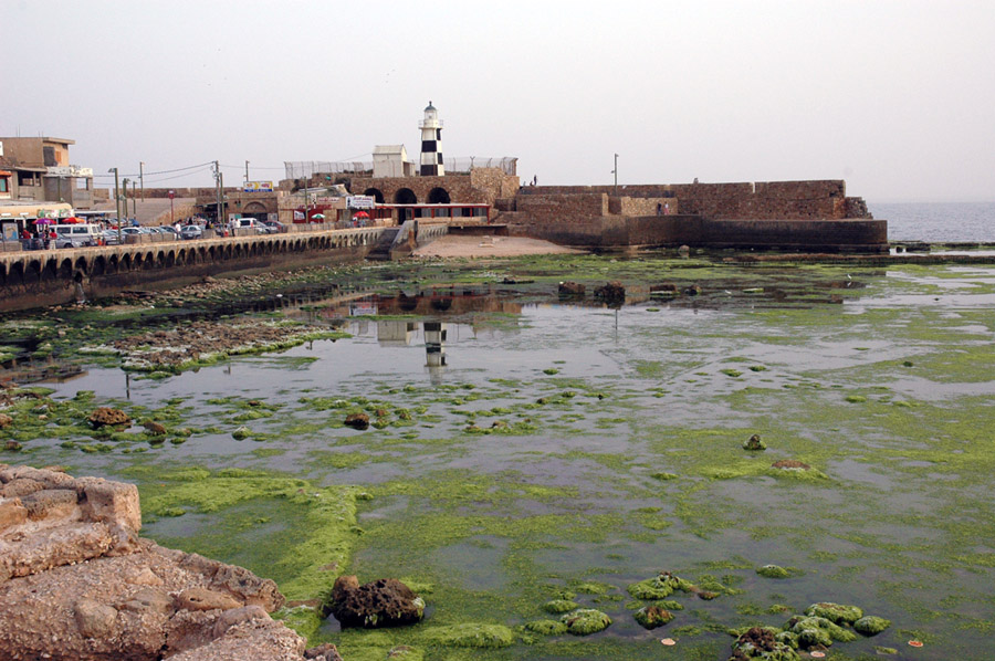 A lighthouse presiding over old city and harbor fortifications and a harbor that was already used by Phoenecians and Egyptians. |
