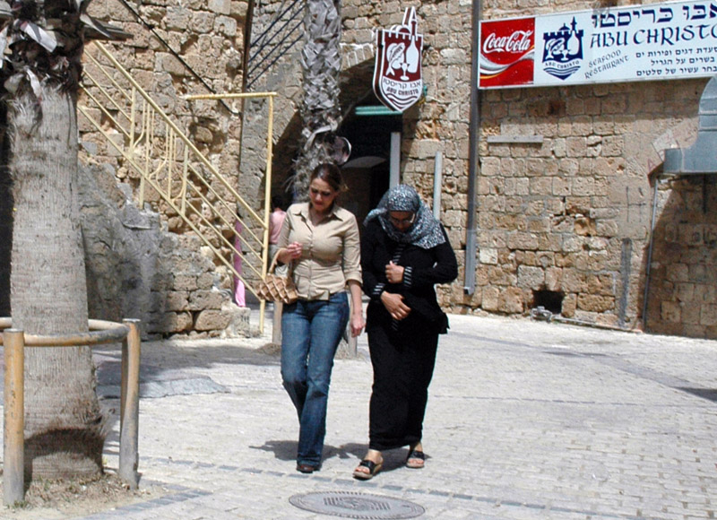 Typically 'large-eyed' Middle Eastern Muslim girls. One daringly modern, one traditional. |