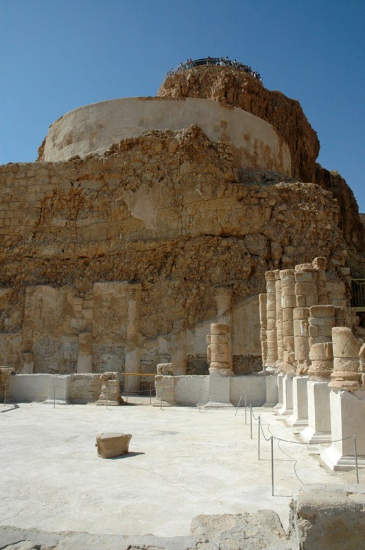 One view up, from the old palace, and one view down, from the top of Masada onto the old palace ruins. |