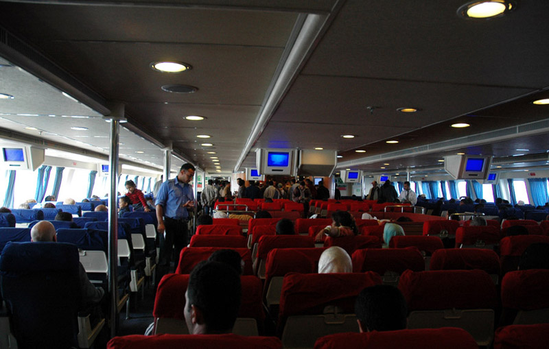 When I departed Nuweiba, Egypt, for Aqaba, Jordan, on a Jordan fast ferry, I asked a crew member of I might get onto the aft deck to take some pictures. He immediately agreed and when I offered him some money he laughed and said, "Sir, you are not in Egypt anymore. We are not that poor to need a bribe or gift for everything we do." |