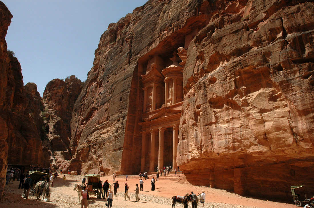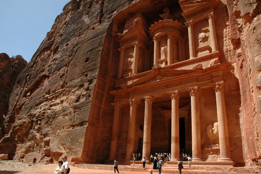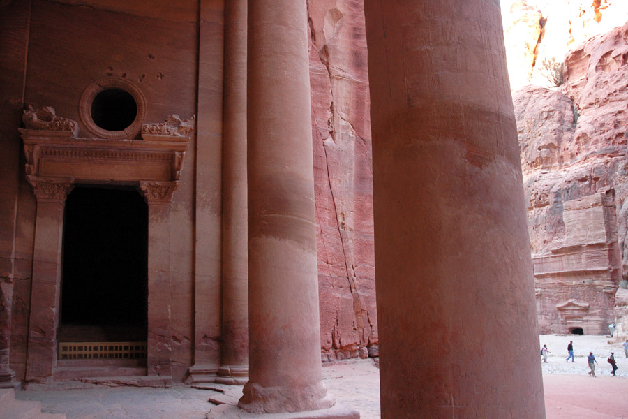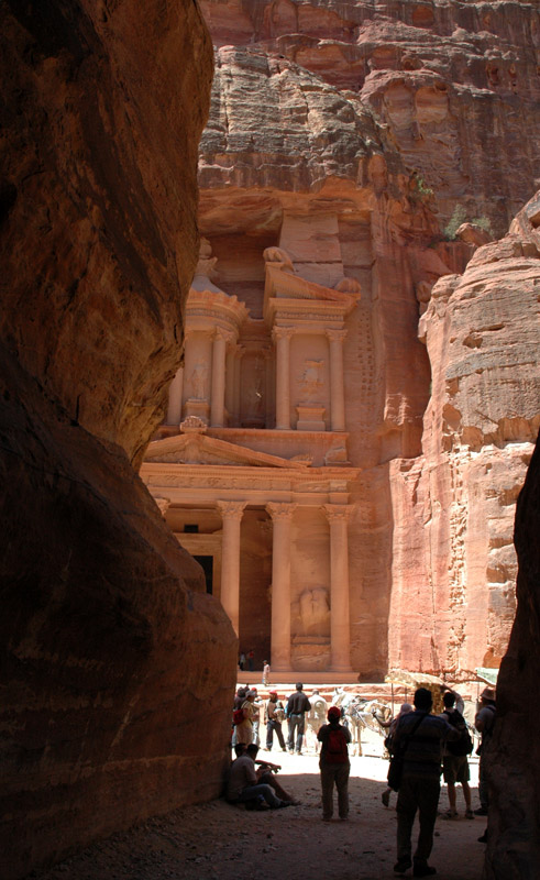 | This is the so-called Treasury. The color of the stone changes, from early morning, when you see it just in the reflected light from the surrounding rock, to later in the day, when the sun illuminates it fully and increases the contrast and changes the color.. |