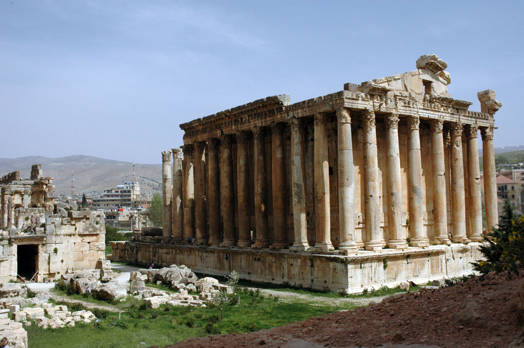 Baalbek, Lebanon, Temple of Jupiter (Zeus) - you can see a person between two columns on the right, and two people next to the foundation, to give you an idea of the monumental scale of this structure. There was nothing like it anywhere in the Greek empire |
