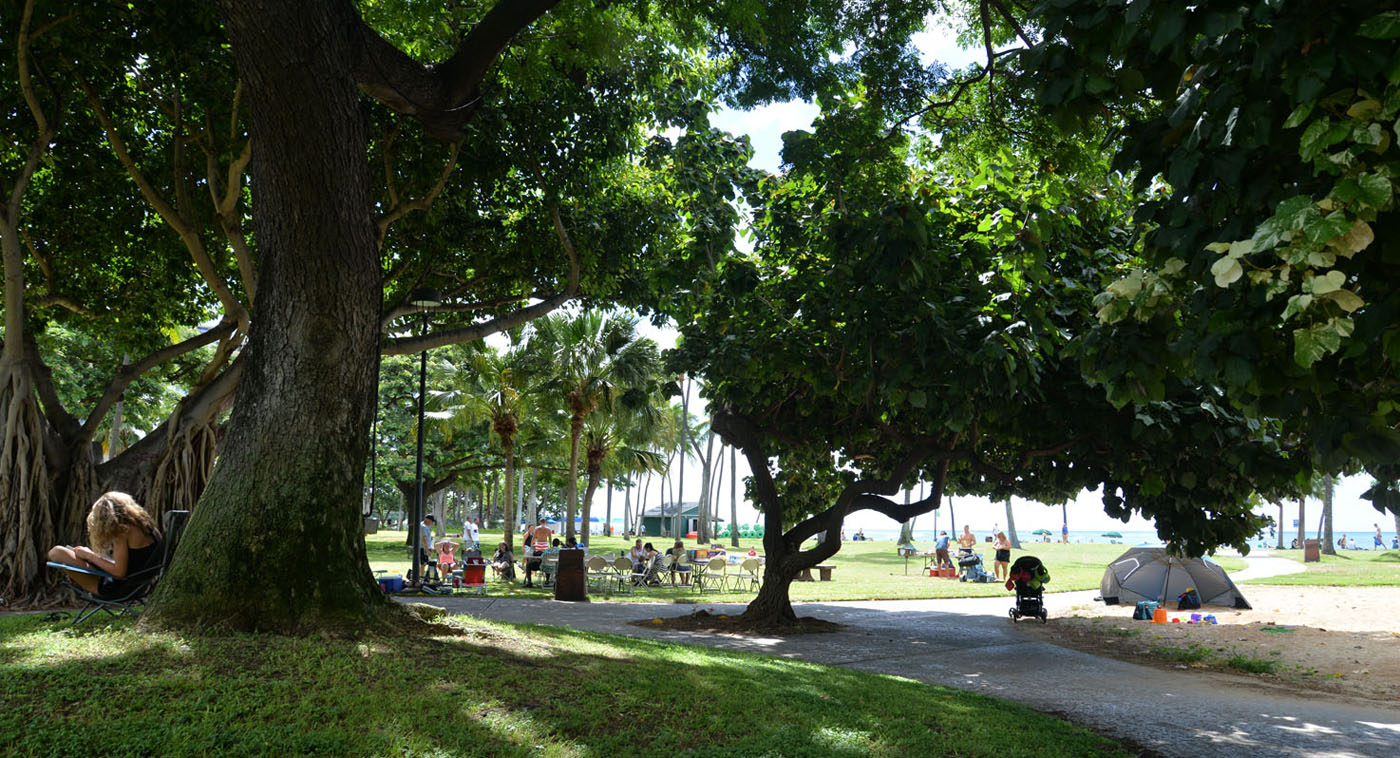 From the Ala Moana I took a bus to Waikiki. It was not exactly the way I remembered it, until I got here, to the old Beach Park by the Army Museum. Military families seem to hang out there. |