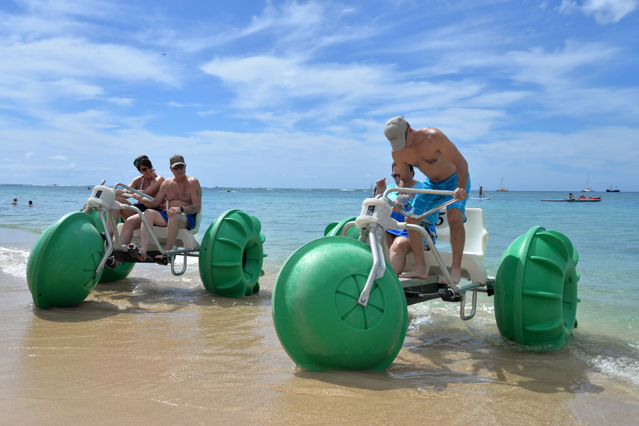 Fun, no doubt, but not a Hawaiian outrigger. Still, they're making their memories. Note the width of these boards. |