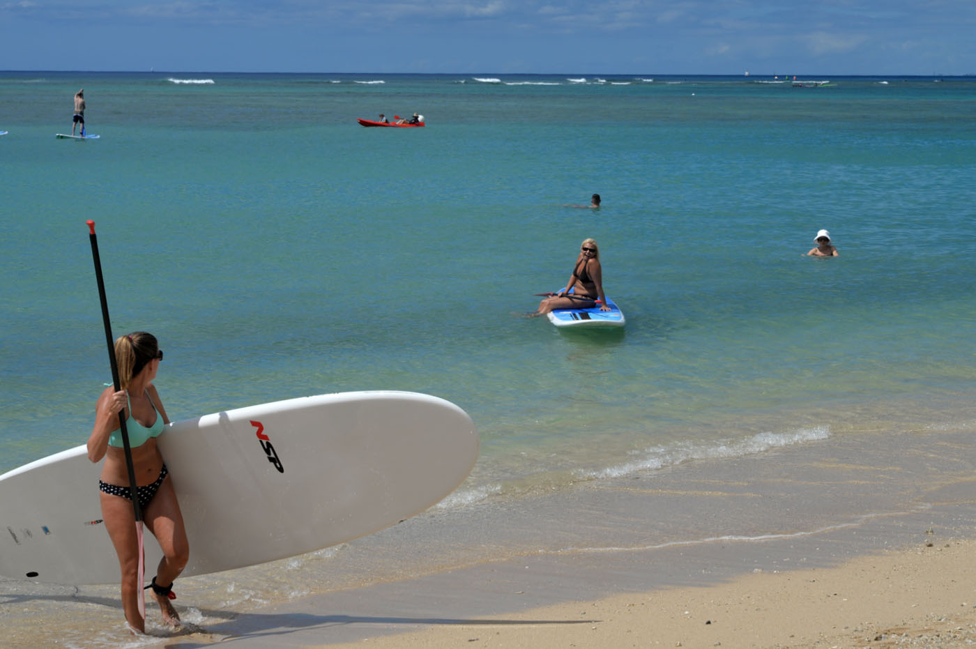 It's the toys that were really different. Up the beach is a military hotel. Outside of that my ex and I boarded a wooden outrigger with a Hawaiian oarsman. We rowed out hard and fast and then surfed back in. Surfers all around us riding the waves with us. All you see now is plastic gear everywhere you look. Some of the authenticity has been lost |