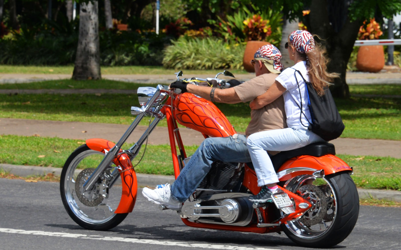 I waited at the bus stop in front of the Waikiki Beach Park, with some Japanese women, waiting for the bus that never came. Since I did not have one of these (the chopper), I decided to walk back to the Ala Moana Center and return to base (there's even an acronym for that RTB). I suddenly had lost the desire to hang out here by myself, surrounded by either young singles or happy couples. |