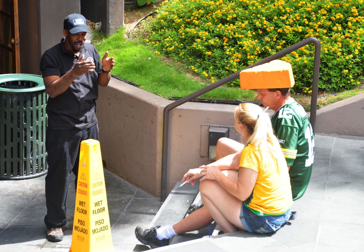 It was Sunday, and Greenbay was playing and some half-time escapies out for a quick smoke and some deep play analysis |