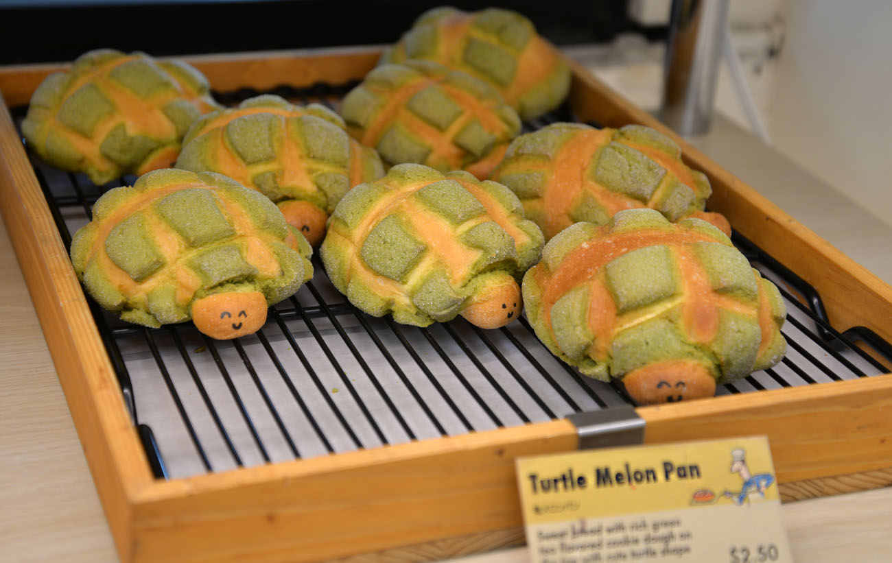 The Japanese bakers must have felt a little playful when designing this pastry. I did not buy one of them. I would have felt silly eating the little smiling turtle bread. |