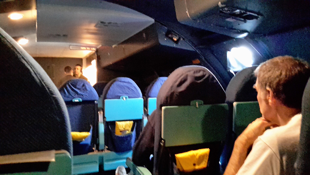 A short while later, we boarded and were able to spread out in the sparsely populated passenger module of the aircraft. |